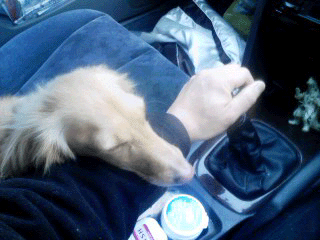 助手席に乗せると(シートベルトで固定してます)、シフトレバーを握ったとたんに