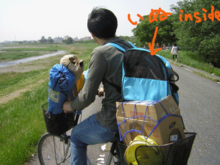 無理矢理荷物を載せて、だく助しょって、チャリで某大きな川の河川敷へ。