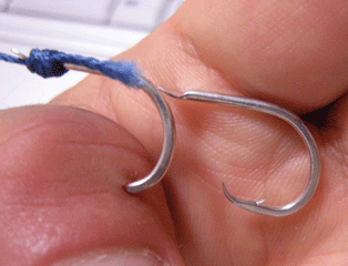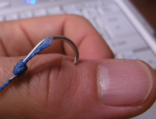 つまみ上げた針のカエシには、ピロ~ンと白っぽくて細いモノが…。
