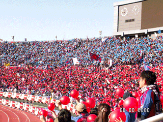 東京の ゴール裏は、風船で青赤に染め上げられましたが、