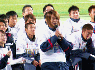 圧勝の喜びは希薄で、少し重い空気が漂っていました。