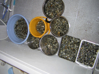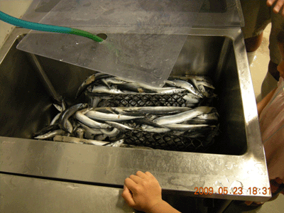 ズラズラ~っと6~7台並んだシンクで、鯖や秋刀魚が解凍されてたり、
